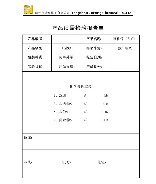 瑞興化工有限公司是生產(chǎn)氧化鋅的重點(diǎn)企業(yè),于2008年通過ISO9001:2008質(zhì)量管理體系認(rèn)證。“瑞興”牌氧化鋅在國(guó)內(nèi)擁有較大穩(wěn)定的市場(chǎng),并遠(yuǎn)銷東南亞、中東、中南美等國(guó)家和地區(qū),在國(guó)內(nèi)外享有較高聲譽(yù)。